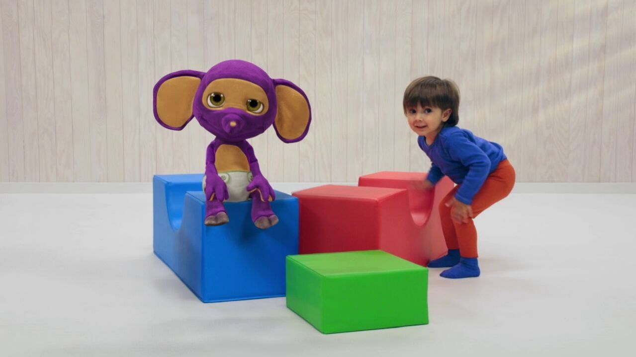 מיני טף עם טופי מיני טף משחקים בקוביות, מנגנים בפעמונים ופוגשים ארנב.